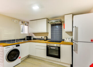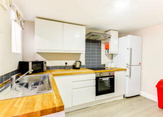 This flat is offered furnished, which includes a small double bed, storage and white goods and would be ideal for a couple.