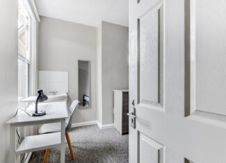 The conservatory lounge has two comfortable sofas and there is neutral decor giving the space a very bright and open feeling. All double bedrooms are fairly equal in size and come furnished with a double bed, desk, desk chair and wardrobe and lockable doors!